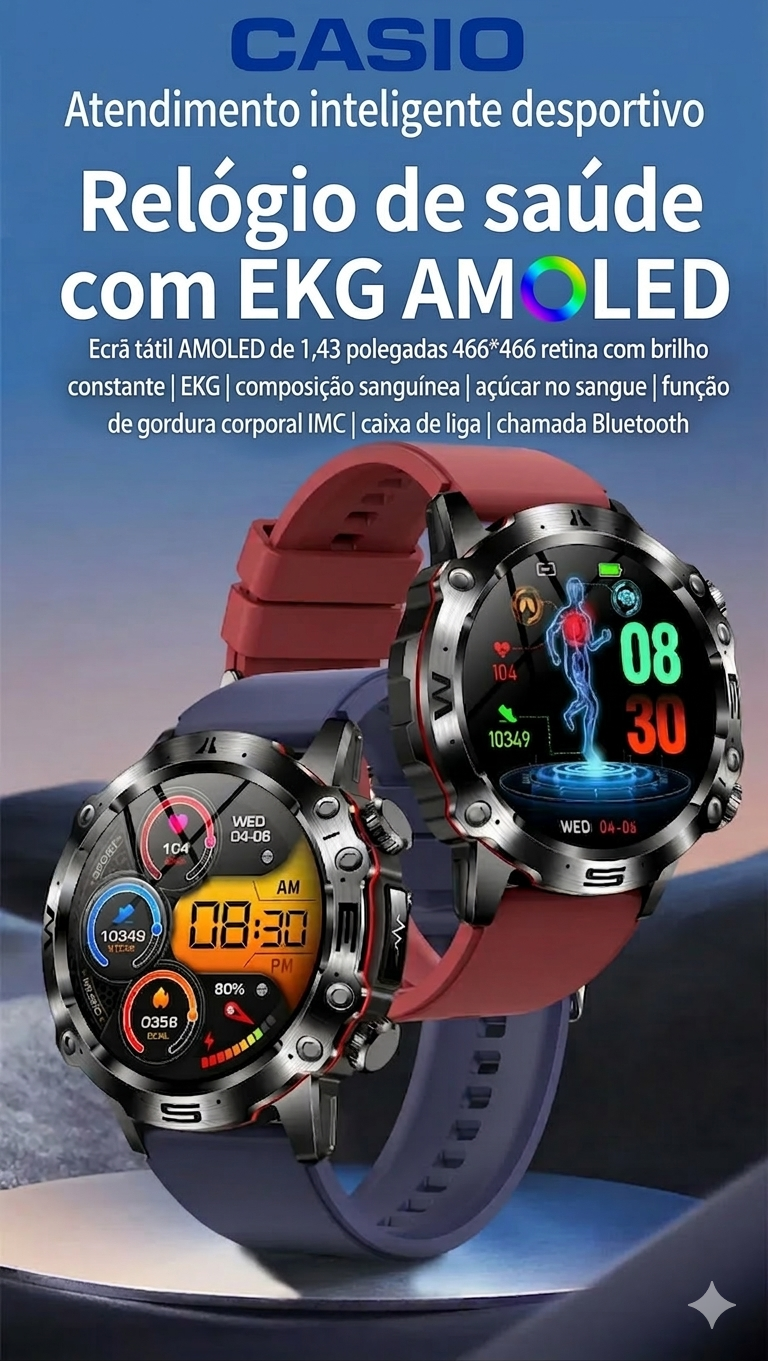 💫 Relógio inteligente Casio AI 2026 – Medição de ECG, glicemia, lípidos sanguíneos e ácido úrico, acompanhando-o a qualquer hora e em qualquer lugar: em casa, no escritório ou em viagem ⏱️